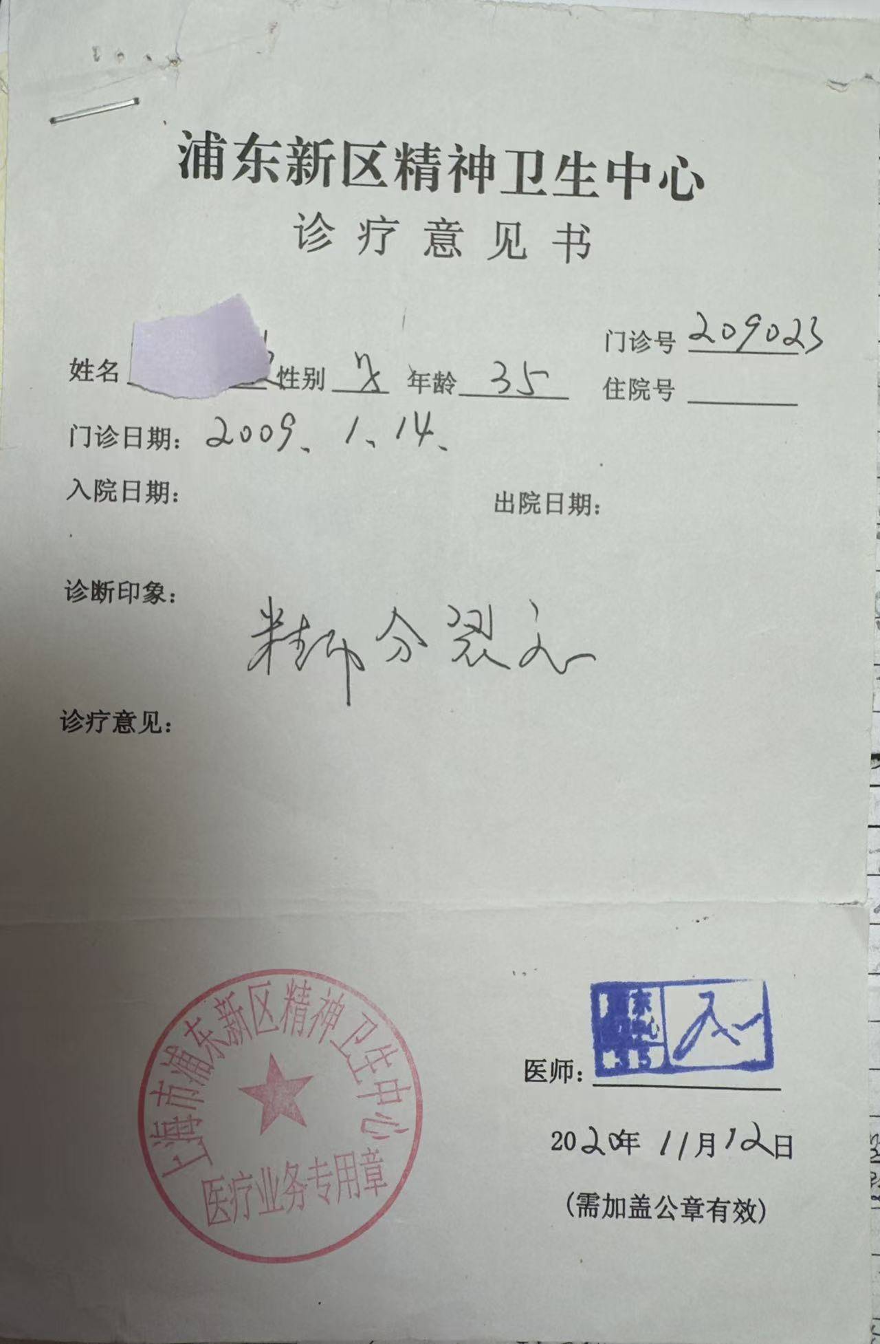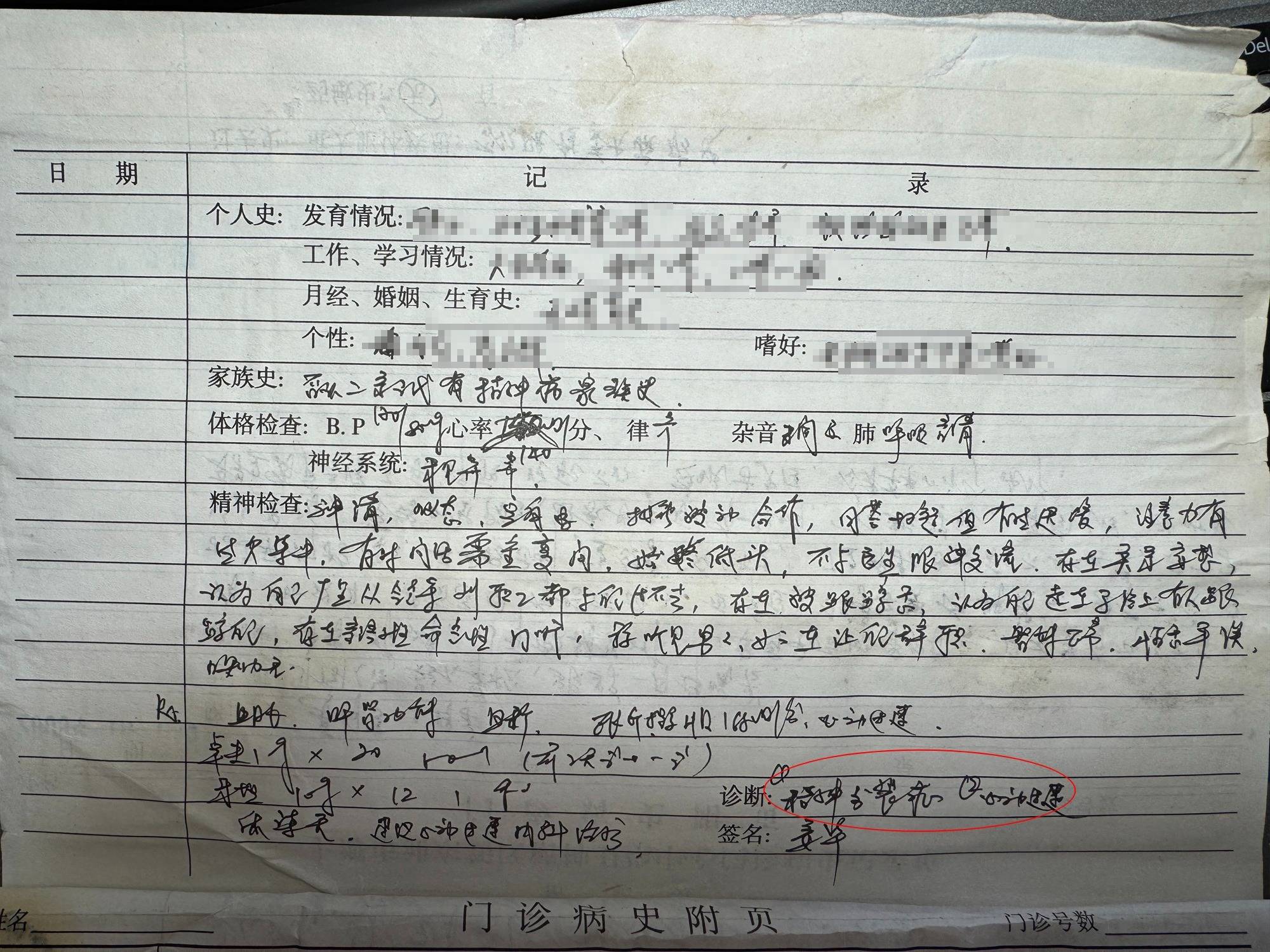 40岁的陈先生告诉潇湘晨报记者,2009年,他因工作压力大,在上海市浦东新区精神卫生中心就诊,被诊断为精神分裂症,“实际上我状态一切正常,后来结婚生子、工作升职、考驾照等都正常。”